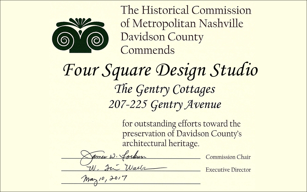 Metropolitan Historical Commission of Nashville and Davidson County 2017 “Preservation – Infill” Award